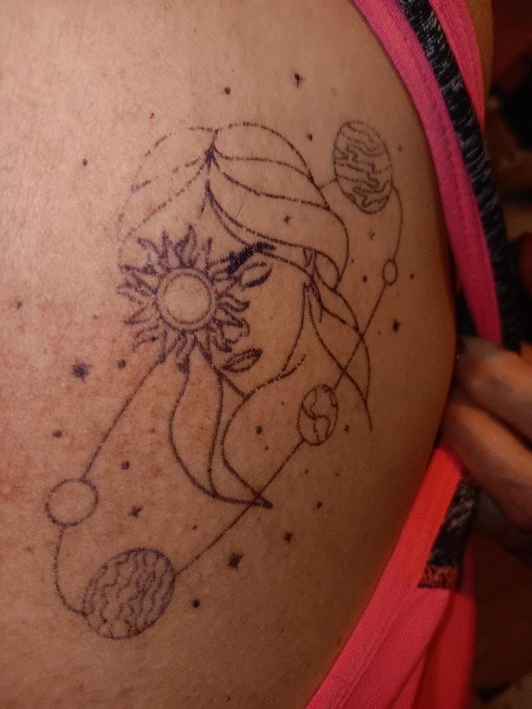 • Tatouage planete femme avec constellation et etoiles